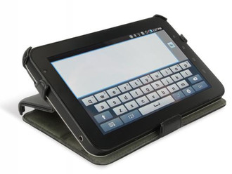 Leather texture folio case for Samsung Galaxy Tablet with multiple viewing angles.