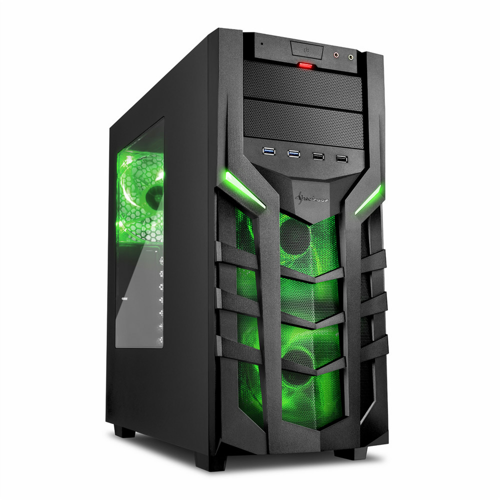 Orderliness is paramount: The Sharkoon DG7000, designed specifically for gamers, impresses with its unique appearance and astounding functionality. The ATX MIDI tower, made from robust materials, is suitable for first-class gaming PCs. Thanks to an optimized cable management system the DG7000 always ensures a tidy appearance, which is viewed through the acrylic side window. Even the 3.5" hard drives and power supply can be installed behind a stealthy panel on the bottom of the case. Two pre-installed 140 mm LED fans are installed behind the stunning front with mesh elements, a 140 mm LED is installed in the rear panel. The DG7000 is available in red, blue and green versions, each with matching colored LEDs, LED fans and interior painting.