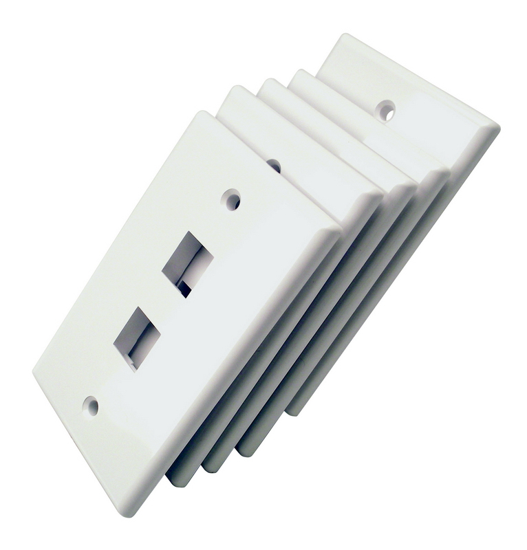 Shaxon's 2 Port Single Gang Keystone Face Plates are made out of flexible and durable ABS plastic and feature a contemporary smooth finish. Our handy 5 Pack contains 5 separate plates for multiple outlet installations. Shaxon's Keystone faceplates are compatible with Shaxon and Industry standard Keystone Jacks. Comes complete with screws for mounting.