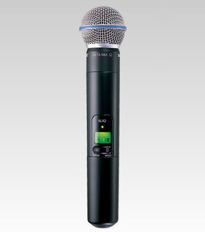 With an interchangeable BETA 58A® microphone cartridge, the SLX2/BETA58 includes a timed backlit LCD display, frequency and power lockout, and Mute functionality.