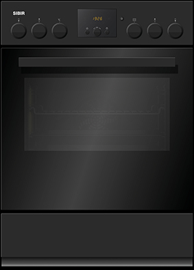 SIBIR Tritherm S/SR. Oven size: Medium, Oven type: Electric oven, Total oven(s) interior capacity: 52 L. Colour of product: Black, Control type: Buttons, Rotary, Control position: Top front. Timer type: Digital, Timer duration: 599 min. Energy efficiency class: A. Width: 548 mm, Depth: 569 mm, Height: 760 mm