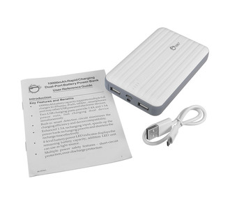 10000mAh Rapid Charging Dual-Port Battery Power Bank - White