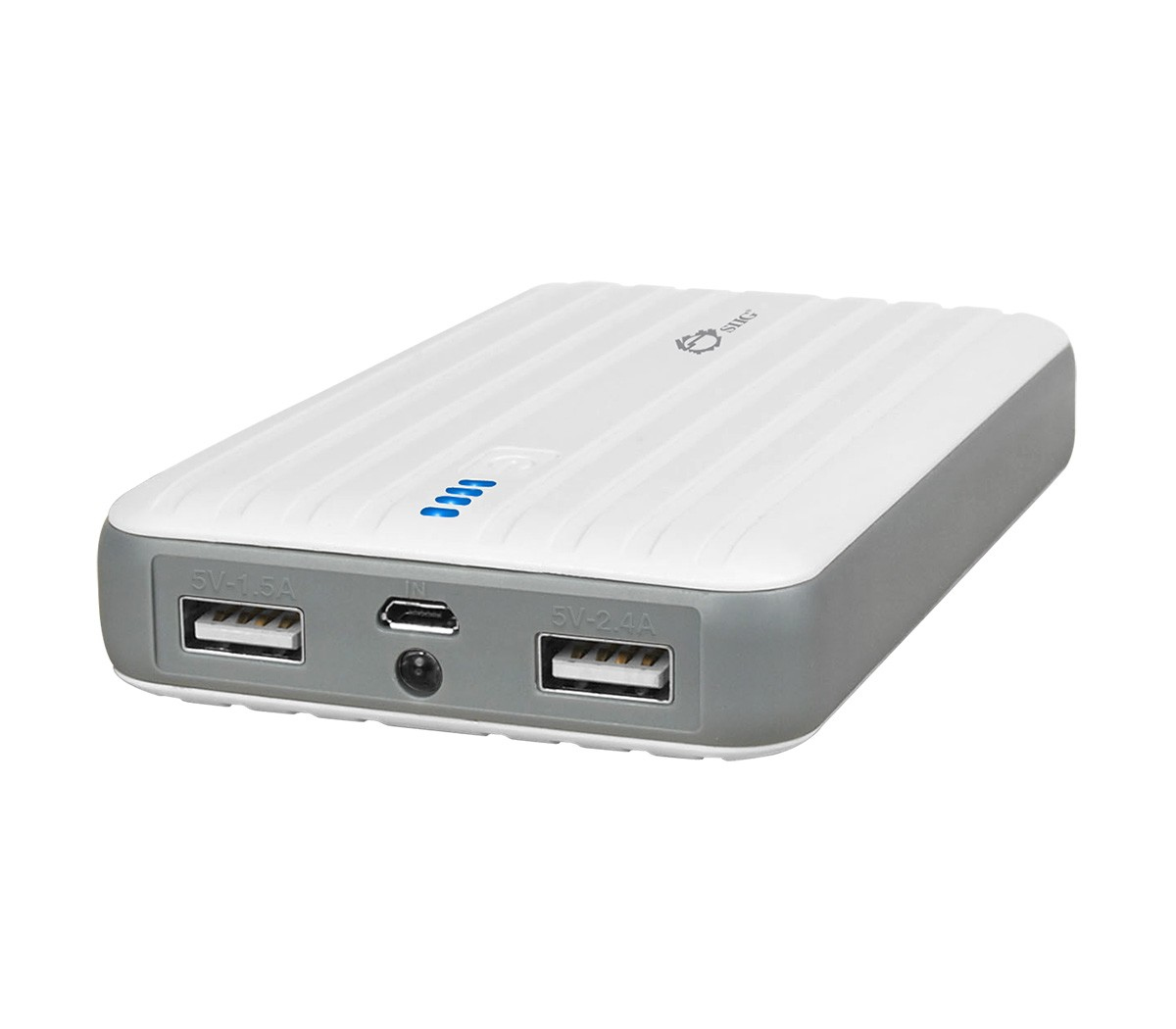 SIIG’s 10000mAh Rapid Charging Dual-Port Battery Power Bank – White is designed to provide large capacity battery power on-the-go for smartphones, tablets or other portable USB-powered electronic devices. It offers10000mAh battery capacity to support multiple full charges of your devices. Dual USB charging ports featuring 2.4A and 1.5A power outputs to allow charging your tablet and smartphone simultaneously. Enhanced 1.5A power input enables to speed up the recharging process for time saving. 4-level battery power LED indicator shows you the available battery capacity at a glance; additional LED unit integrated can be used as extra light source. This large capacity dual-port portable power bank is an ideal traveling accessory, providing sufficient and reliable battery power to support iPhone®, iPod®, tablets, smartphones and other portable USB-powered electronic devices while you are on the road.