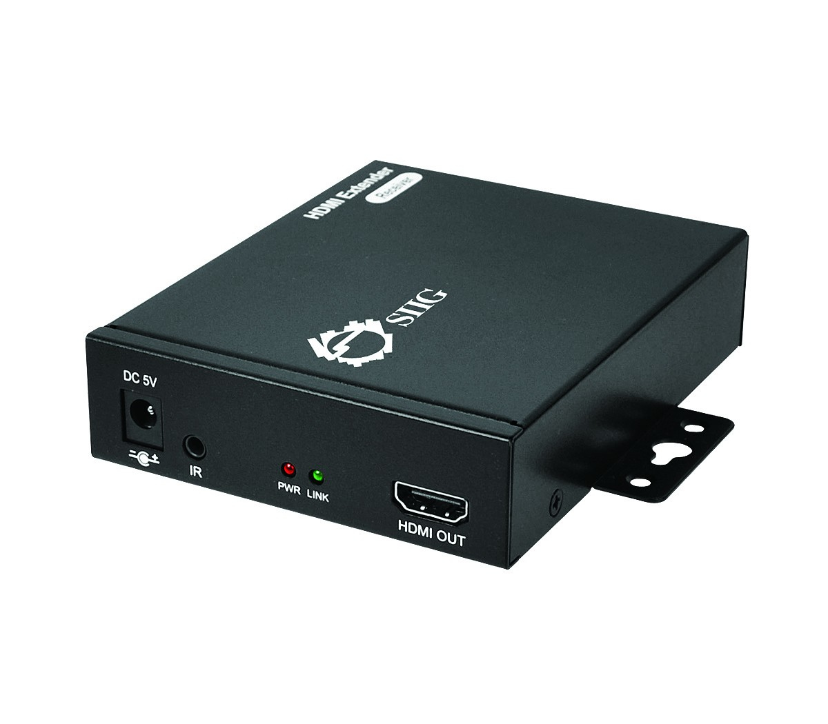 SIIG’s HDMI Over Gigabit IP Distribution System - Receiver is designed to receive and extend HDMI signal from a transmitter to an HDMI display at greater distance using economical CAT5/6 cable. This receiver also works with SIIG’s HDMI Over Gigabit IP Extender Kit with IR to extend HDMI signal over a Gigabit LAN Network to multiple displays at various locations. It supports full HD 1080p resolution, HD Surround Sound and IR control. No software or driver is required to install and the built-in mounting mechanism makes integration convenient and tidy. It provides a cost-effective HDMI extender solution to extend and broadcast high quality video and audio signal to the remote display(s) utilizing inexpensive network cable.