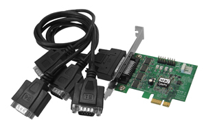 Four 9-pin serial (16950 UART) x1 PCI Express card.