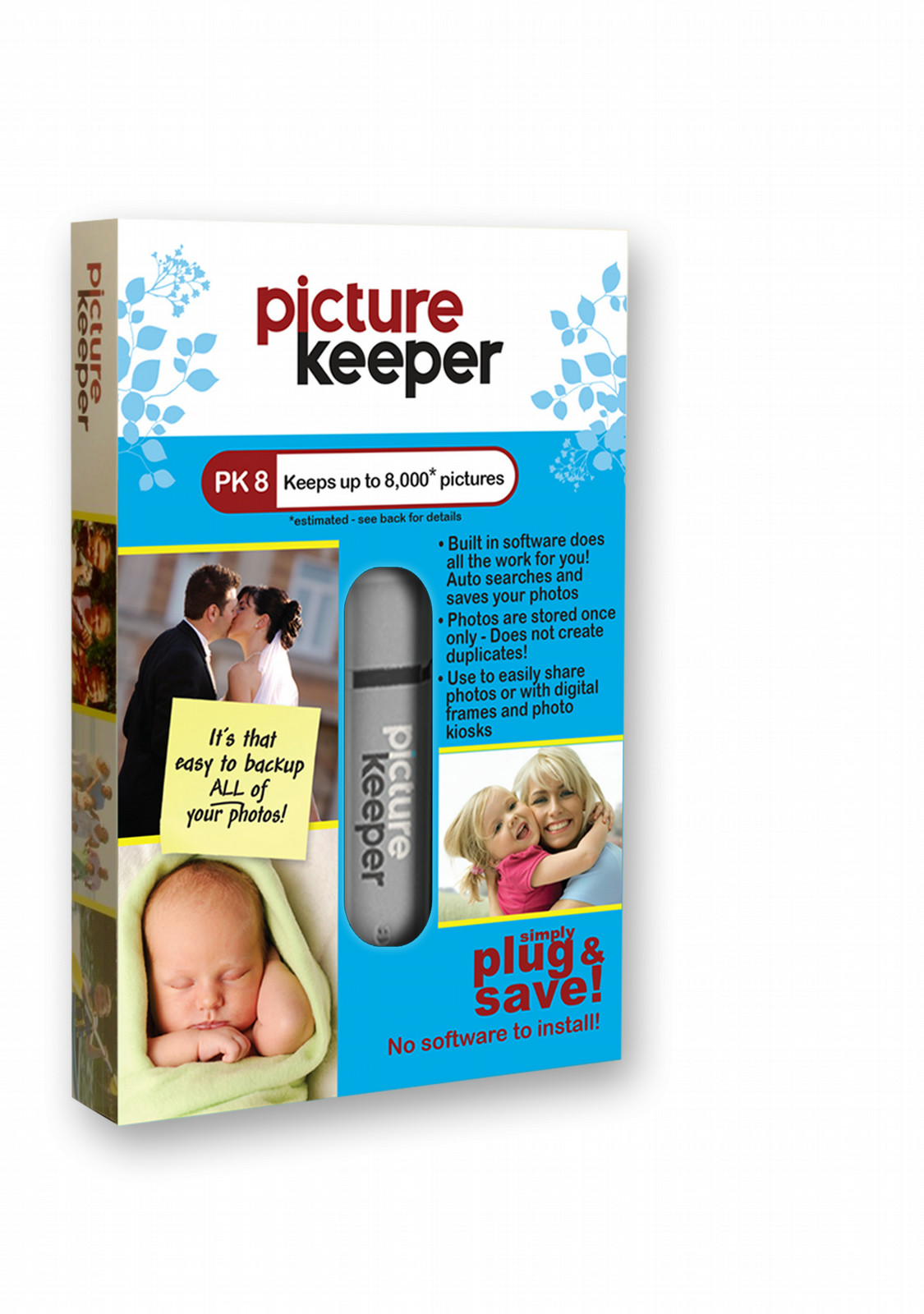 PK 8 Holds up to 8000 photos What’s the one thing you’d want saved if your computer crashed? Your pictures! Keep up to 8,000* of your pictures safe with this easy-to-use backup device. Just plug it in and it finds your pictures for you! It’s perfect for sharing and preserving your favorite memories