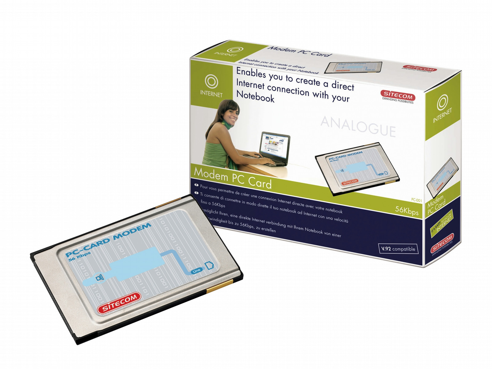 Despite its size, this PC card modem is equipped with all modern technologies. It has a download speed of up to 56 kbps and is supplied complete with software for sending and receiving faxes.