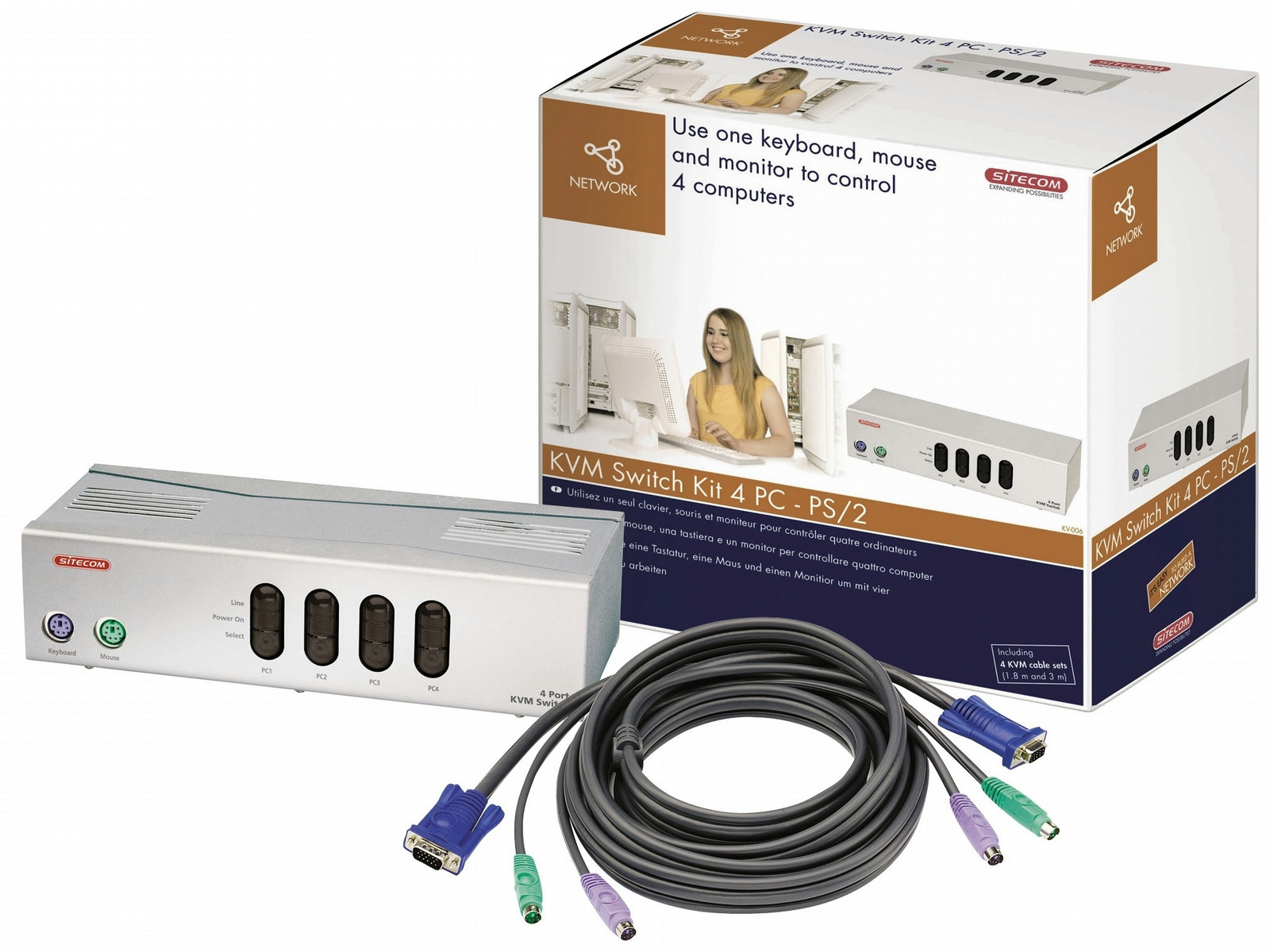 - Controls 4 PCs with 1 keyboard, 1 monitor and 1 mouse.