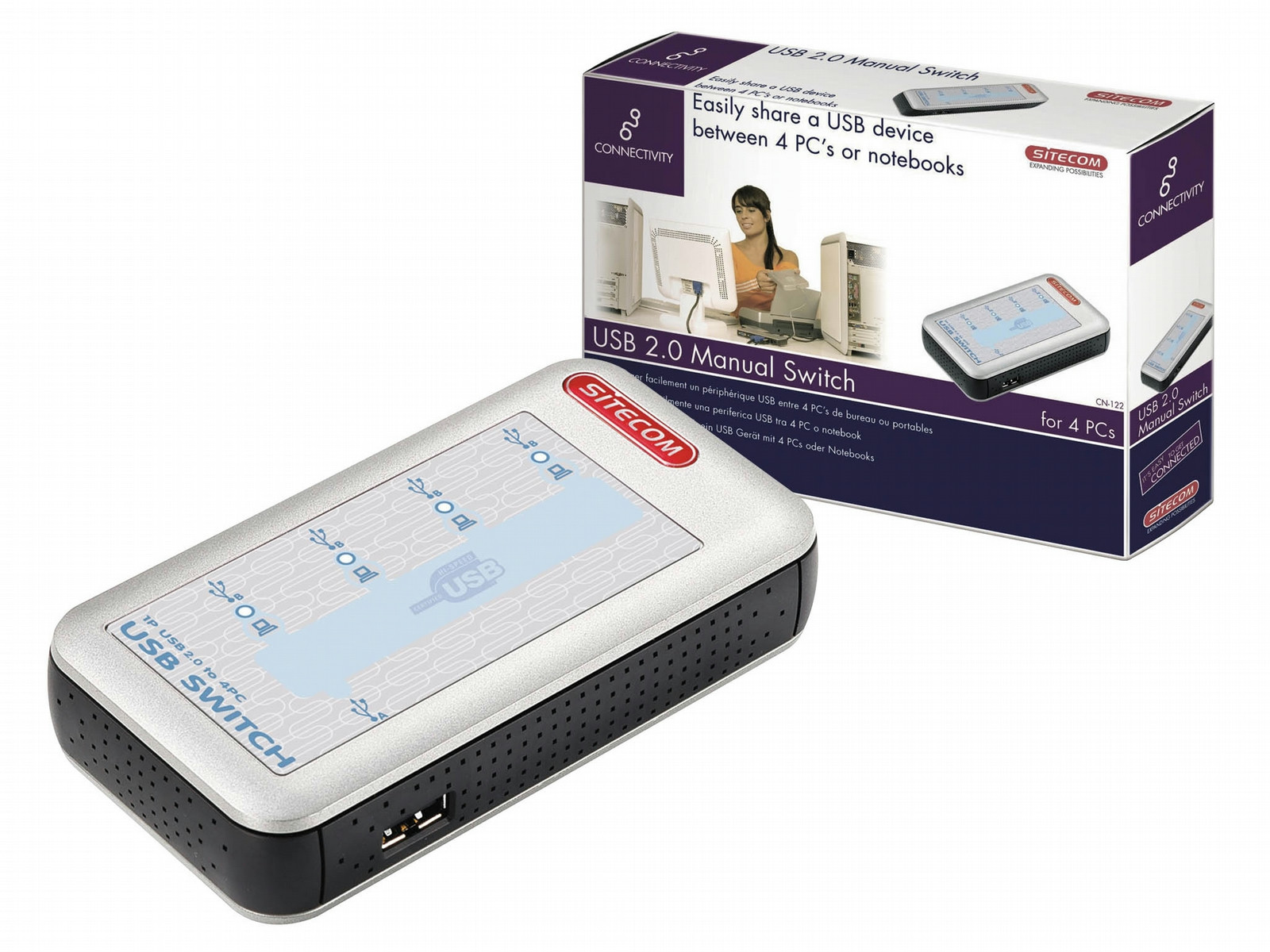 This USB manual switch allows 4 PCs and/or notebooks to share any USB device such as a printer or scanner. It is very easy to switch between the various PCs and/or notebooks using a simple key combination.