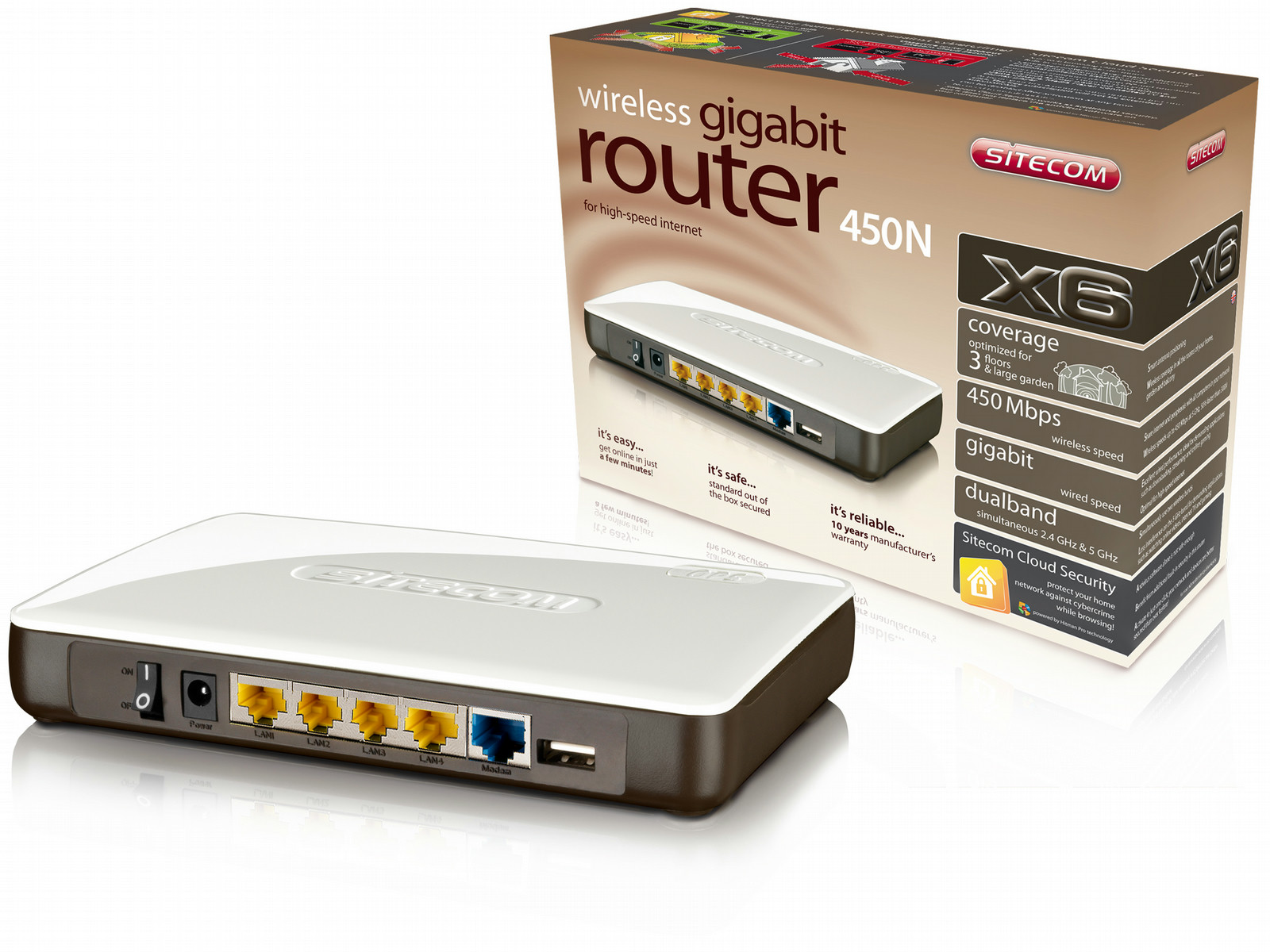 <b>Easily create a secure, high-speed network with wireless speeds of up to 300 Mbps on the 2.4 GHz frequency, 450 Mbps on the 5 GHz frequency and cable speeds of up to 1000 Mbps. The router includes Sitecom Cloud Security to protect your home network</b>