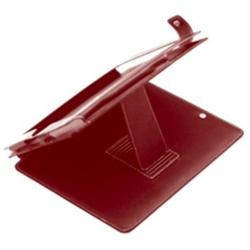 Red Leather custom made case for iPad - Flexible foot to stand the device on a table.