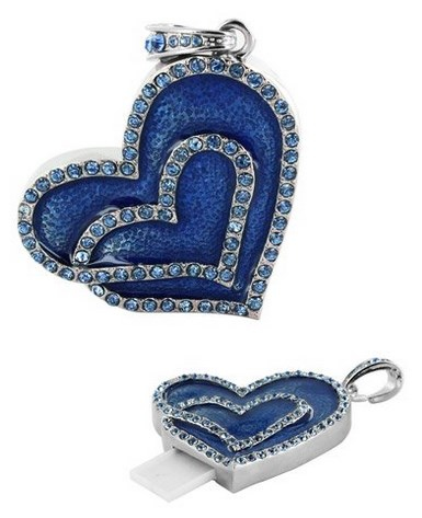 8GB Bling Crystal Rhinestone Double Heart Shape USB 2.0 Memory Drive Disk, Blue
