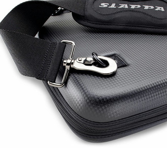 The HardBody PRO, "Carbon Elektra" is sexy inside and out, featuring a rich outer carbon laminate and a crimson red interior. "Elektra" comes in 3 different sizes;10" for iPad, BlackBerry Playbook and most all other tablets as well as Asus, Acer, Dell, Toshiba and most other 10"-12" netbooks;13" is ideal for MacBook PRO and MacBook Air, and 17" is perfect for large gaming and professional laptops (yes it fits beasts like the Asus G73 and Alienware m17x). The HardBody PRO "Carbon Elektra" cases are tough, rugged and lightweight, and feature SLAPPA's award winning molded Duro-Shock xEVA shells, which are water resistant and fire retardant. On the inside, all 3 models feature super-cush lock down straps for your device, keeping it securely in place and highly protected. The 10" and 13" version have 3 storage pockets to store cords, power bricks and small gadgets (like iPhone or BlackBerry). The 17" version has 5 storage pockets for cords, power bricks and devices, and also a document pocket and a key chain clip. The 17" version also has a honeycomb frame to add maximum shell stabilization. All 3 cases utilize industrial strength zippers, molded alloy zipper pullers, alloy rings for shoulder straps (the strap is included on the 17" case and is optional for the 10" and 13" cases) and a domed alloy SLAPPA logo.