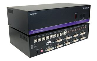 8-port DVI-D, USB 2.0 and audio switch. Control 8 computers, PC or Mac, on one display up to 20 feet away with USB 2.0 keyboard and mouse, stereo audio, and IR control.