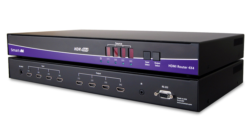 The HDR4X4 switches multiple resolutions up to 1080p and digital audio from any four HDMI sources to four HD displays.