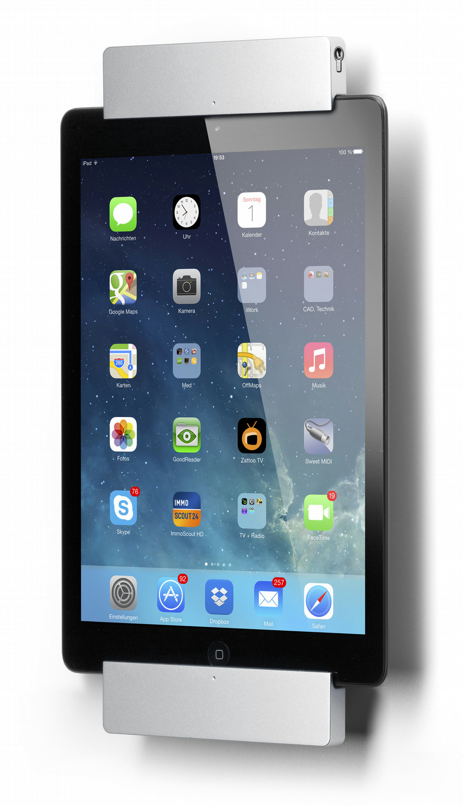 In the office, at trade fairs, in the hotel or in public places your iPad is protected from thieves with sLock.