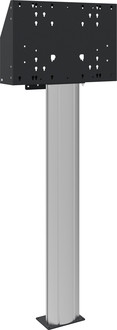This is a floor column for (touch-) flat screens with a VESA mount integrated. The column requires to be installed close to a wall, after which it can be fastened with the wall mount. Due to this the weight is strained on the floor. Behind the mounting function we reserved space to position a mini-PC or thin client, that can be locked by a lid. Where required, the mounting pattern can be extended to VESA 800-400 with an accessory, and possibly the solution can also be used as five-surface solution.