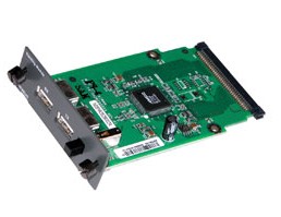 The SMC6824S is a Stacking-Kit for the TigerStack™ III SMC6824M. It comes with 1 slide-in module which has 2 USB Type-A ports, and a stacking cable. The stacking module can be installed into slot M2 of the SMC6824M and allow up to eight units to be linked together and managed from one unit using one IP address.