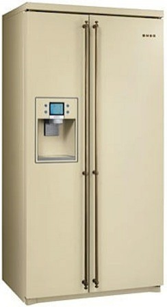 Frigorifero Coloniale Side-by-Side, 90cm, panna. Classe energetica A+ Smeg SBS8003PO. Capacità netta frigorifero: 358 L. Capacità netta congelatore: 173 L, Tipologia: Lato, Capacità di congelamento: 12 kg/24h. Colore del prodotto: Cre