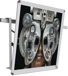 Projection screen surface is made of matt white hardened polystyrene. Attention: not suitable for writing on! Finished in the white Design profile with grey synthetic corner caps. Supplied with adaptor set for assembly to the rail.