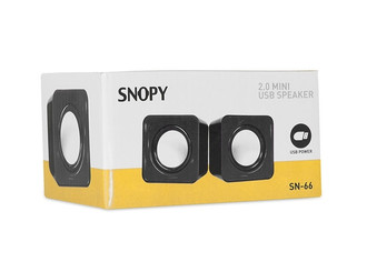 Snopy SN-66. Audio output channels: 2.0 channels. Connectivity technology: Wired, Interface: 3.5 mm. Colour of product: Black, Design: Cube. Recommended usage: Universal. Power source type: USB