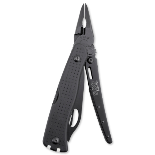 Creating versatile, innovative, and dependable products is what SOG has become known for. The new PowerDuo is a hybrid between our knife mentality and tool sensibility. It has a split personality. It is neither knife nor tool, but an equal combination of both nested in a compact form. Take away the pliers and you have a multi-blade pocketknife with a full size locking blade, screwdrivers, can/bottle openers, tweezers, etc. Take the knife side away and you have SOG's renowned Compound Leverage pliers with one-handed flip opening capability. Put the two together and the PowerDuo gives you options in an ever-changing volatile world.