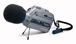 Unique style Micro Tape Recorder with quality microphone. Auto Reverse. Double recording time. 3 microphone sensitivity modes (lecture / meeting / dictation). Voice Operated Recording (VOR) function. Clear Voice function