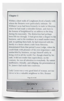 15.24 cm (6 ") E Ink Pearl Display, 800x600, Clear IR Dual Touch Screen, 2GB, MicroSD Card Slot, Micro USB, 3.5mm Audio Out, Text: ePub eBook, Adobe PDF, TXT; Audio: MP3, AAC; Image & Photo: JPEG, GIF, PNG, BMP; Wi-Fi 802.11b/g/n, 168g, White