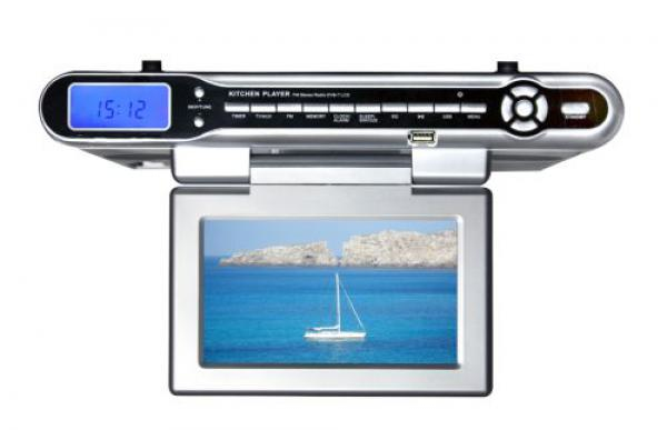 KTV-100 Flip-down 7" TV Kitchen Radio Alarm Clock