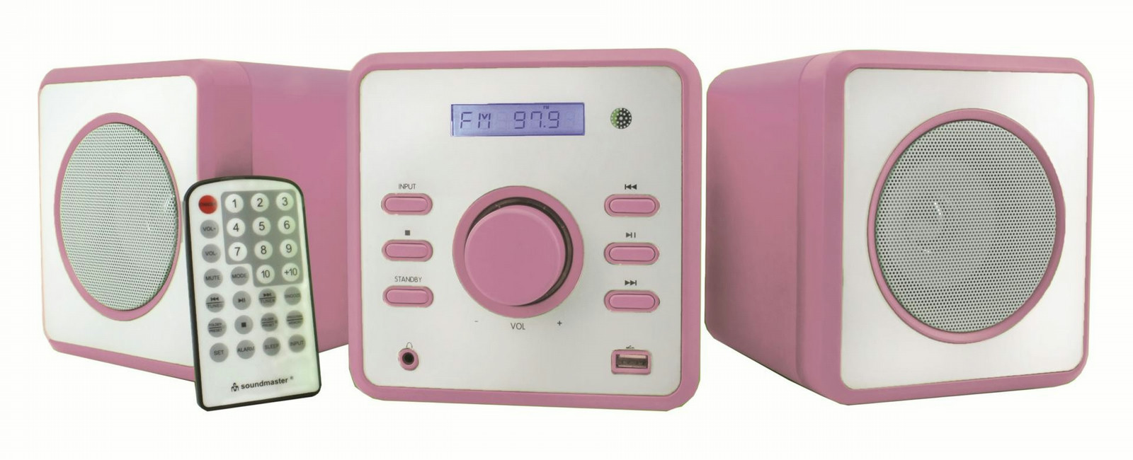 Mini-Stereo-Centre with CD/USB, FM PLL‐radio, CD, CD‐MP3, CD‐R/RW, 2x 25W PMPO, LCD, Headphonejack, Pink