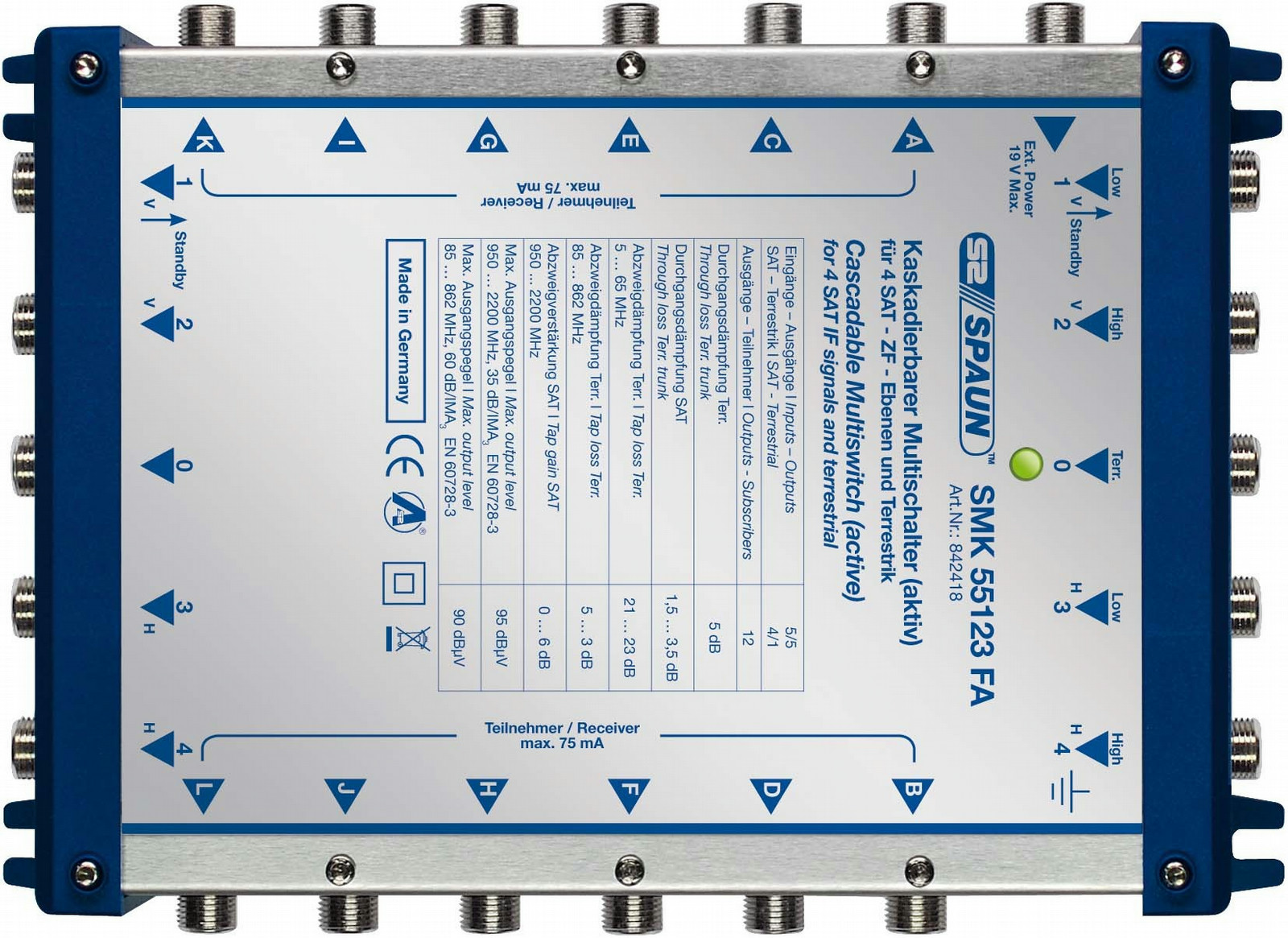 - Active terrestrial (85... 862MHz) / passive return path.