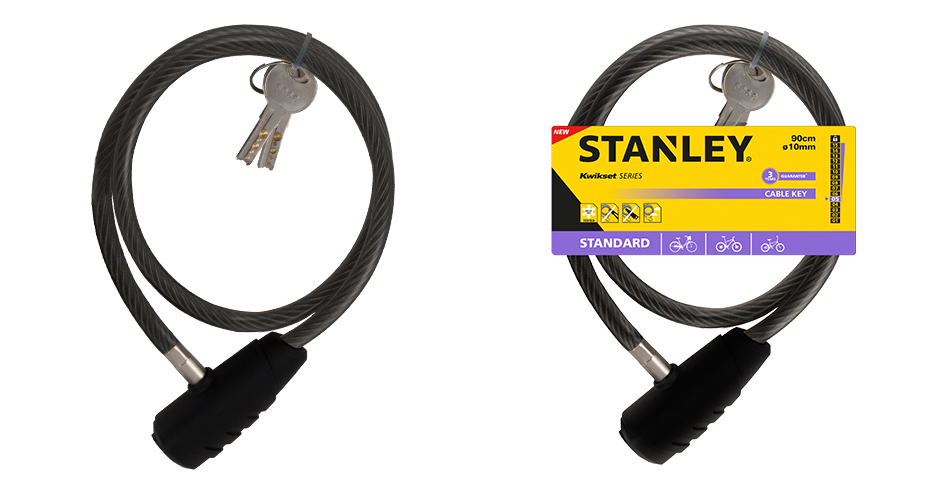 The Stanley key cable bike lock with its flexible vinyl coated galvanized steel cable and its high security wafer cylinder provides the best operability when a flexible, light cable is needed. The cable locks come with a high quality metallic lock body with reinforced ABS housing for added strength and durability. Includes 3 keys.