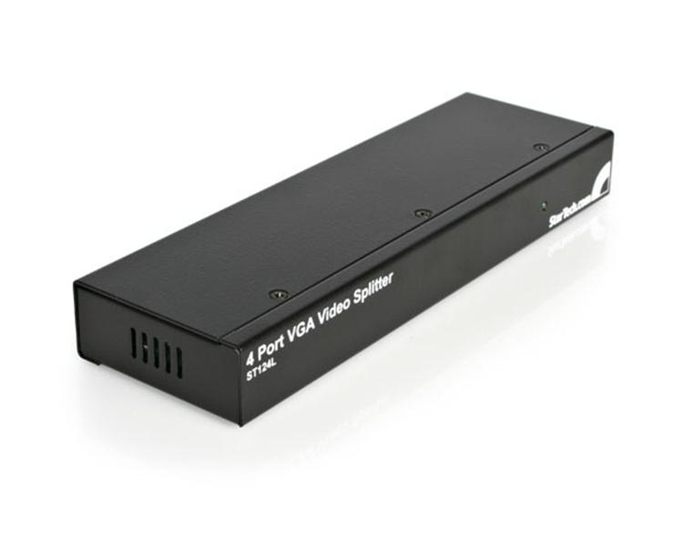 The ST124LEU 4 Port VGA Video Splitter allows a single VGA source to display VGA video onto four monitors simultaneously. Perfect for classrooms, tradeshows, or in-store displays where high quality video on several monitors is needed. The simple plug and play operation makes setup quick and easy so you can be up and running in minutes.