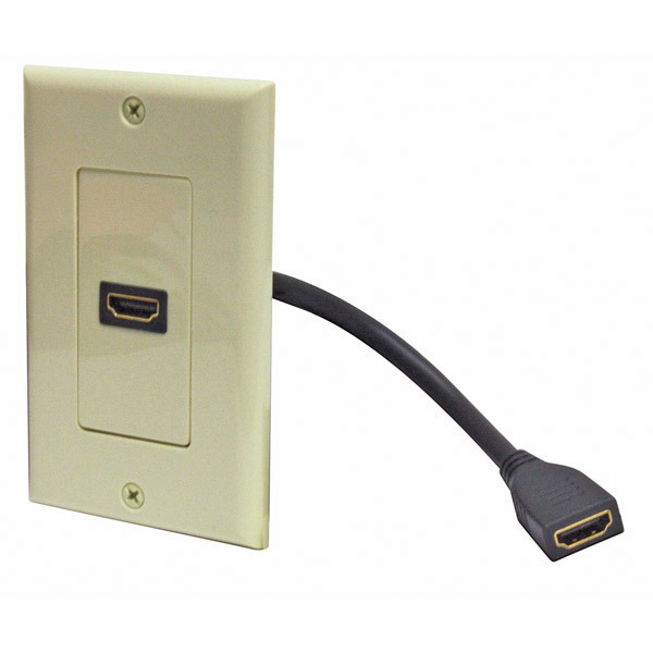 Wall faceplate, 21.59 cm (8.5 ") HDMI pigtail cable, ivory