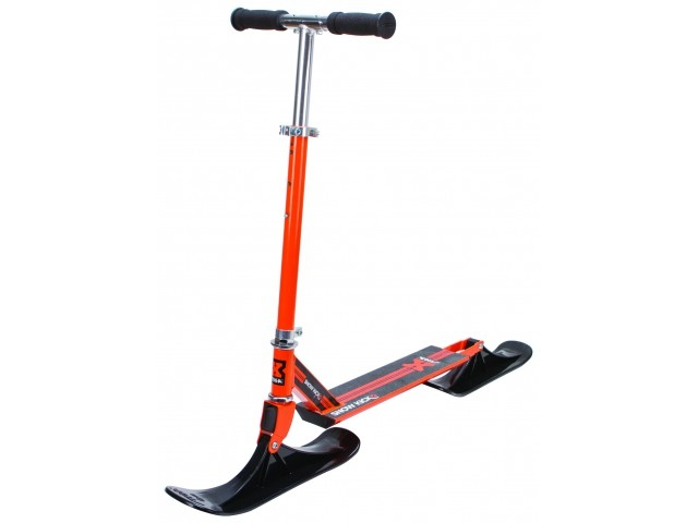Kick bike for snow. Extra stable deck. Foldable and adjustable in three different heights. Rider weight maximum 50 kg.