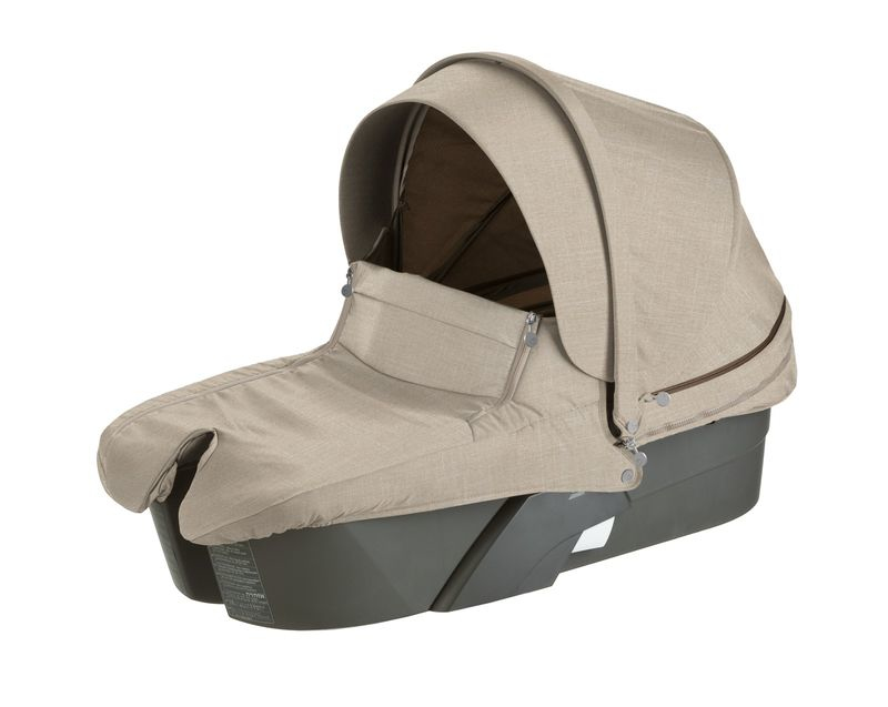 Bring your beautiful newborn to explore the world safely from the Stokke® Xplory® Carry Cot. Its luxuriously soft interior and hard-shell exterior are designed specifically to keep your newborn cozy and safe on your adventures in the city, to visit Grandma, or just around town. Extremely stable and easy to maneuver, Stokke® Xplory® Carry Cot fits right to the Stokke® Xplory® Chassis and is the perfect carriage for you and baby when out and about. Suitable for birth to 20 lbs. Hood for Stokke Xplory carry cot is not included. It can be purchased separately or if you have the Stokke Xplory with seat, the hood is interchangeable.