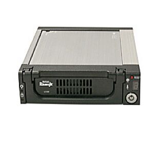 The Rhino®JR RJR110 is a aluminum-constructed removable drive enclosure designed for mounting any 3.5 inch form factor, low-profile (1 inch) SCSI, Serial ATA (SATA) or Parallel ATA (PATA) drive into a 5.25 inch half-height peripheral bay. All RhinoJR removable models feature cooling fan(s) and a front-accessible key lock/power switch which secures the carrier within the receiving frame.