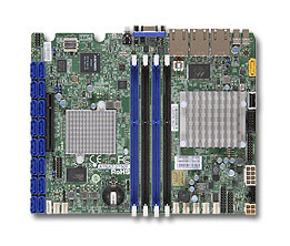 Intel Atom processor C2750, SoC, FCBGA 1283, 20W 8-Core, Up to 64GB DDR3 1600MHz ECC or non ECC UDIMM in 4 DIMM sockets, Dual GbE LAN ports via SoC i354, IPMI with dedicated LAN, Real Pack