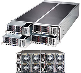 The FatTwin™ is the latest addition to Supermicro's evolving line of Twin Architecture SuperServer® solutions. The 4U FatTwin greatly expands compute and storage capacities beyond Supermicro's existing 2U Twin2™ and 1U Twin™ SuperServer® systems to achieve increased performance with lower power consumption. By virtue of its shared components the FatTwin improves cost-effectiveness and reliability, while its modular architecture makes it flexible to configure and easy to maintain.