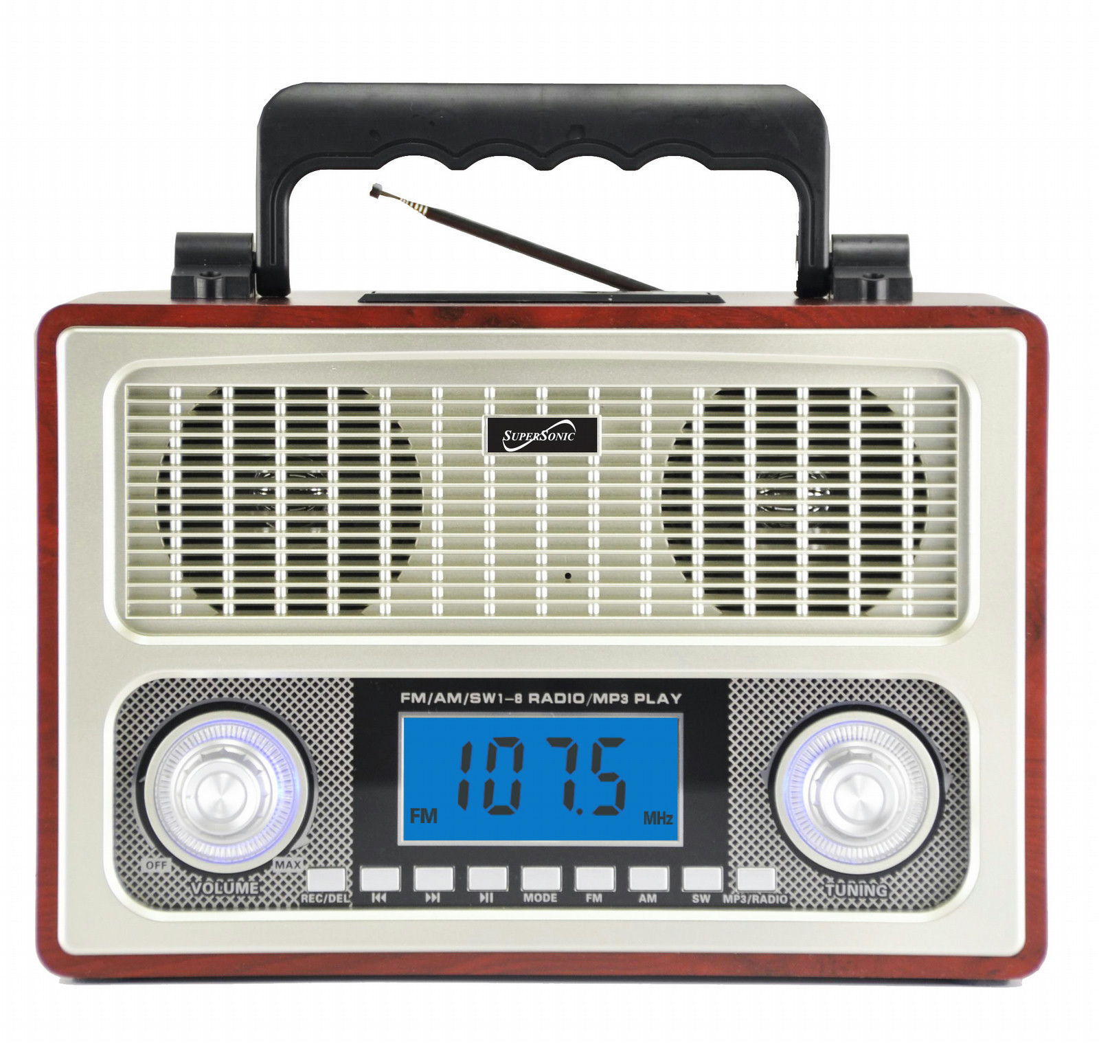 10 band, USB, MP3, LCD display, AC/DC, wood