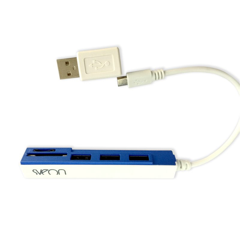 Sveon SCT031. Host interface: USB 2.0, Hub interfaces: USB 2.0. Data transfer rate: 480 Mbit/s, Compatible memory cards: MicroSD (TransFlash), MicroSDHC, MicroSDXC, SD, SDHC, SDXC. Power source type: USB. LED indicators: Status, Colour of product: Blue, White. Windows operating systems supported: Windows 7 Enterprise, Windows 7 Enterprise x64, Windows 7 Home Basic, Windows 7 Home Basic x64, Wind