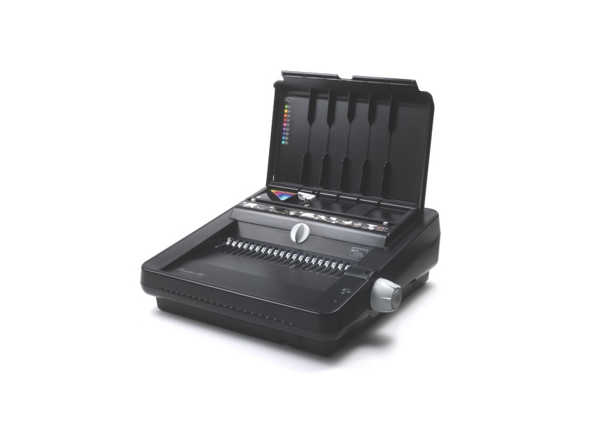 - Punches and binds letter size sheets