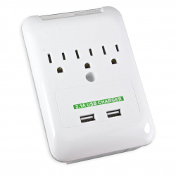 Converts a plain old fashioned AC outlet into a modern day outlet surge wall tap. It features 3 fireproof and surge protected outlets plus 2 USB charging ports for today's portable devices.