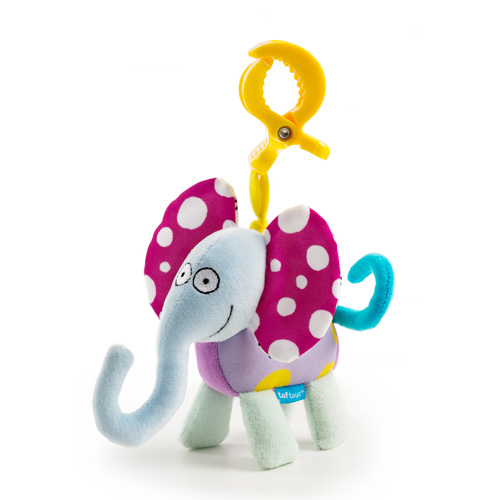 Soft rattling jitter toy, attaches with a large size plastic clip