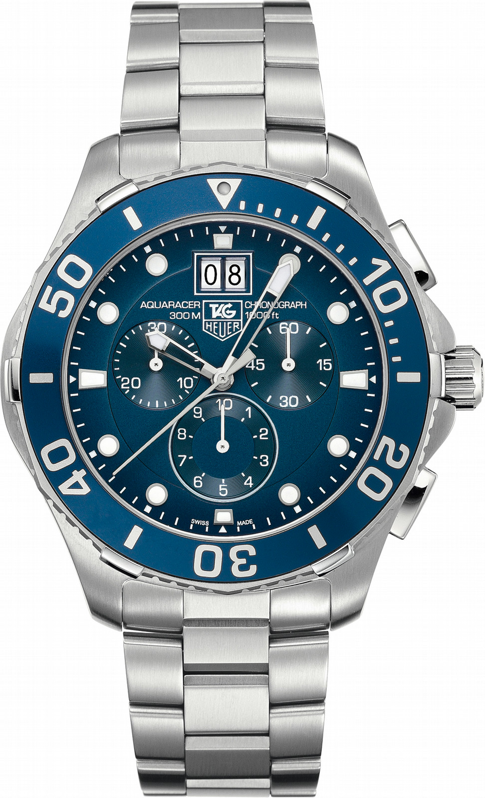 Aquaracer Grande Date, Quartz, 300 m, 43 mm, Steel/Blue