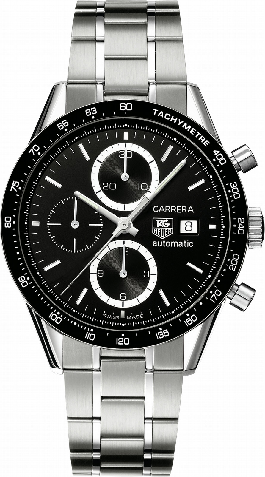 High functionality and masculine styling make this Calibre 16 Automatic Chronograph a necessity for all lovers of motor racing. A high-tech Calibre 16 automatic movement powers the chronograph functions like central seconds, plus minutes and hours. A small seconds counter is positioned at 9 o'clock and a date feature at 3 o'clock.An open flange design allows for easy readability of seconds. A tachymeter scale on the bezel gives average speed measurement.