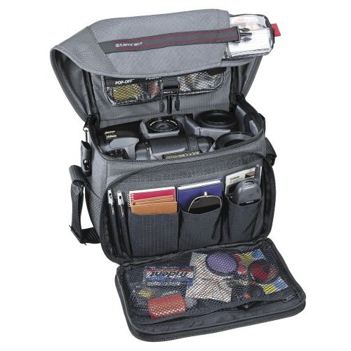 The Zoom Traveler 4 is equipped for a digital SLR, 3 to 4 lenses and a flash. It has the complete list of features including the USA patented Lens-Bridge® and LensGate® Divider System, Pop-Off™ pocket, a full-length Zip-Drop™ front pocket with organizer compartments, the Slide Pocket™ in front features Tamrac's U.S. patented Memory & Battery Management System™ that uses red flags to identify available memory cards and batteries. The unique Piggy-Back Pocket™ feature in back slides over the handle of rolling luggage and Rolling StrongBoxes™ for easy and secure travel. Also features our exclusive Modular Accessory System™ (M.A.S.™) and Strap Accessory System™ (S.A.S.™) attachment slots.