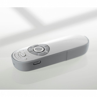 Laser pointer becomes cursor control by sliding the conveniently positioned mode switch. Touchsensitive sensor tracks fingertip movement and delivers flexible cursor movement in any direction for smooth and easy navigation through lengthy spreadsheets and PDF documents.