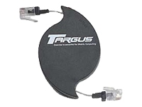 The Targus Mini Retractable RJ-11 Cord reel is a convenient, inexpensive alternative to bulky telephone cables. This retractable phone cord reel protects RJ-11 clips and puts an end to the tangles of loose phone cords. Simply pull one end and the telephone cord easily extends up to eight feet. A self-retracting mechanism makes it easy to reel the telephone cord into its small and portable storage container. This retractable phone cord reel fits right in your pocket!