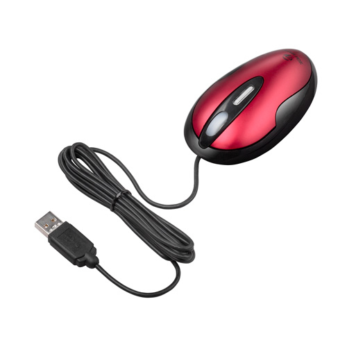 Targus USB 3-Button Laser Notebook Mouse, Red/Black. Device interface: USB, Movement detection technology: Laser, Movement resolution: 2000 DPI. Mouse weight: 70 g. Compatible operating systems: Windows 2000/XP/Vista, Mouse dimensions (WxDxH): 100 x 55 x 36 mm